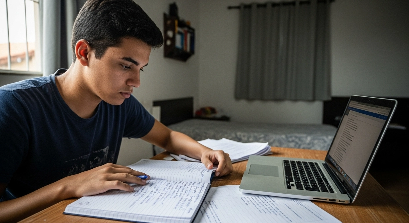 No seu caso, qual tarefa mais aparece: resumo de leitura para aula ou resumo formal para trabalho maior? E qual parte você mais trava: cortar detalhes ou organizar as ideias sem copiar?