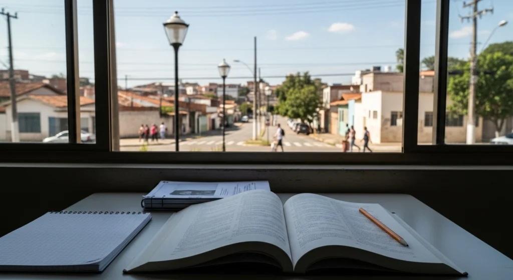Faça um “mapa mínimo” em duas linhas: “tipo de lugar + regras do cotidiano”. Exemplo: “cidade grande, transporte público, deslocamento longo, violência percebida” ou “interior, vizinhança próxima, trabalho rural, estrada de terra”.