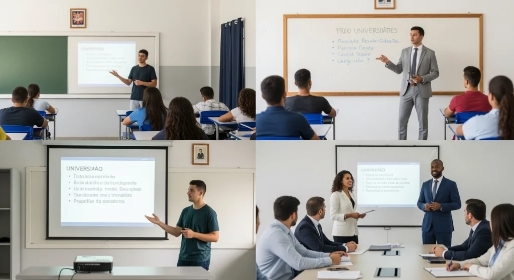 Variações por contexto no Brasil: escola, técnico, faculdade e trabalho